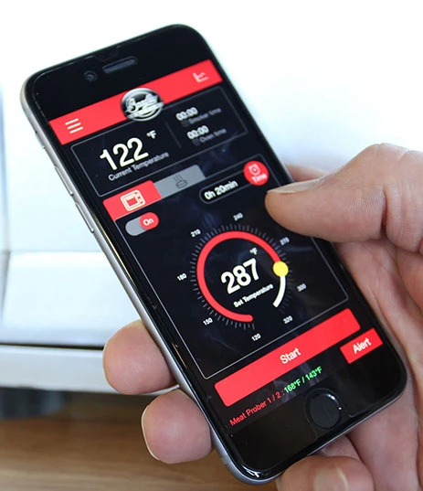 Durch den Anschluss via Bluetooth 4.0 können Sie Ihren Bradley Smart Smoker bequem mit einer Handy App steuern. Kompatibel mit jedem beliebigen iOS- und Android Gerät.