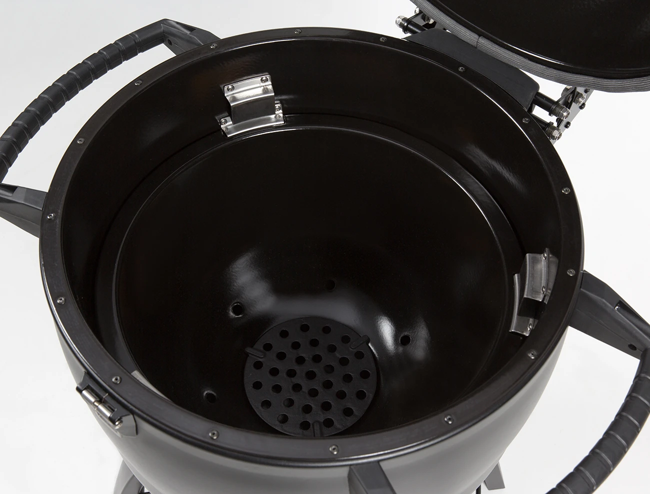 Der KEG 2000 bietet echtes Kamado Grillen. Dabei setzt er aber nicht auf einen Korpus aus Keramik, sondern besitzt eine doppelwandige Stahlkonstruktion. Damit ist er nicht nur viel leichter als die Keramik-Kamados, sondern ist auch wesentlich unempfindlicher gegenüber Beschädigungen.