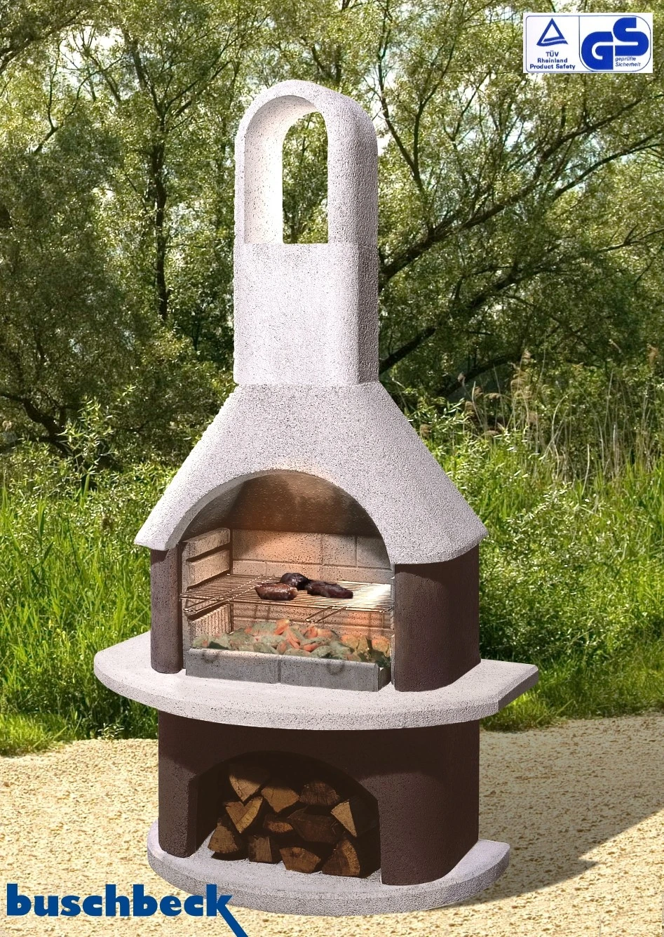 Die Buschbeck Gartenkamine sind TÜV- und GS-zertifiziert. Die Lieferung erfolgt mit Aufbauanleitung, Ansatzkleber und Grillrost.