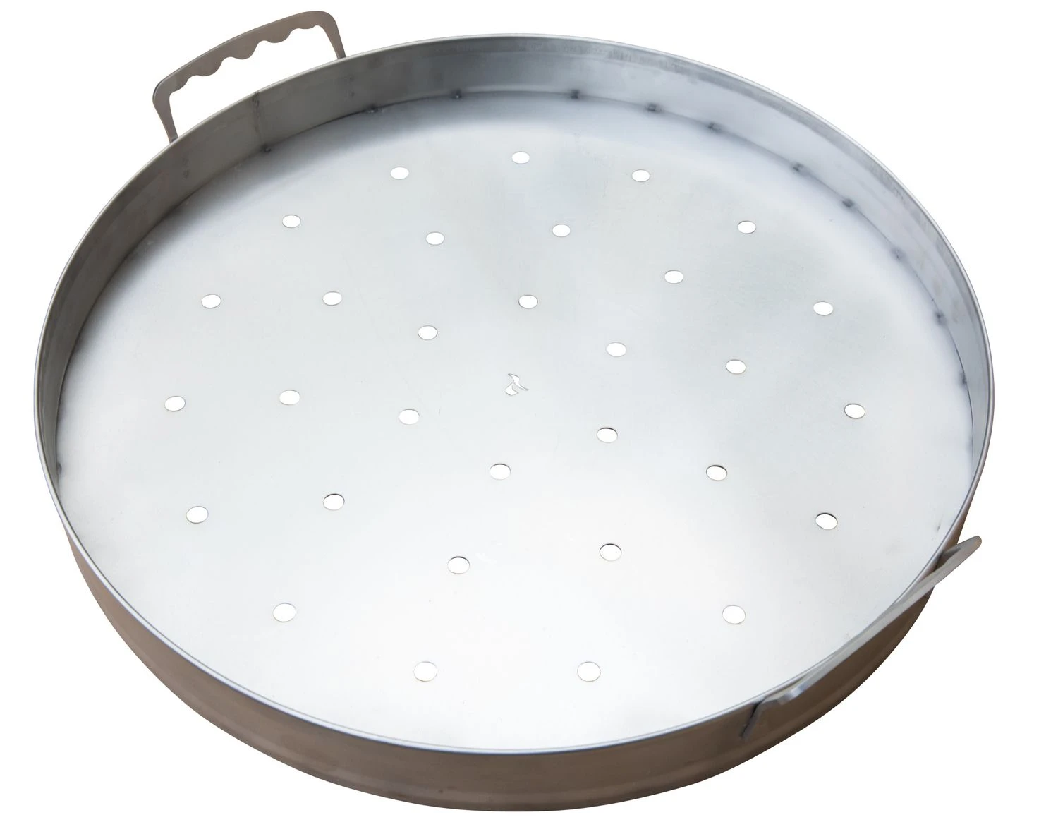 Die Löcher in der Schale sorgen für die notwendige Belüftung der Glut. Gleichzeitig fängt die Schale herabtropfendes Fett auf, schützt so die Scamolsteine im Feuerraum und erleichtert die Reinigung des Grillkamins.
