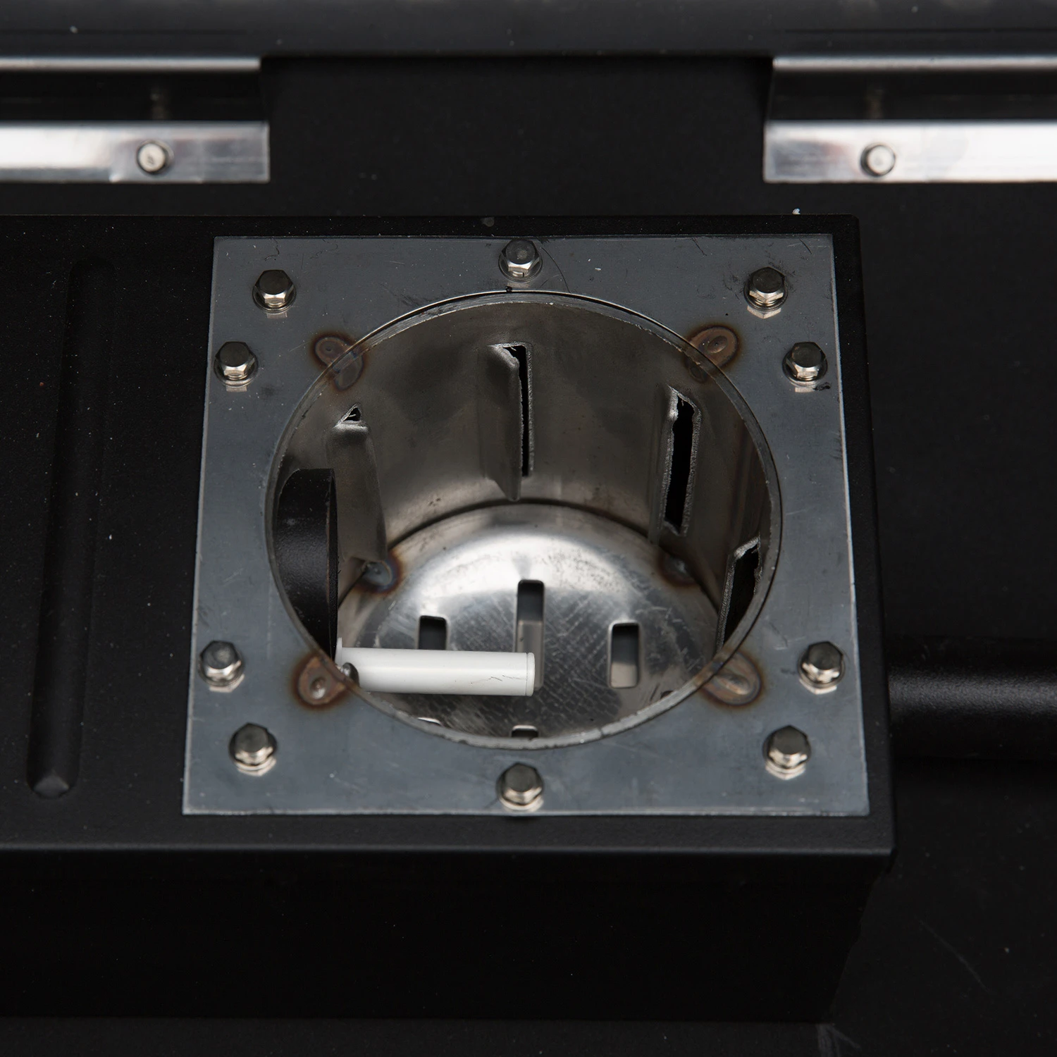Nicht nur im Edelstahl Deckel der Garkammer ist ein Sichtfenster verbaut. Auch auf den Füllstand im Pellettank haben Sie dank der integrierten Scheibe jederzeit einen Blick und können rechtzeitig neue Pellets einfüllen. Fällt der Füllstand schließlich auf ein sehr niedriges Niveau, erinnert Sie auch der integrierte Pelletsensor noch einmal an das Nachfüllen.