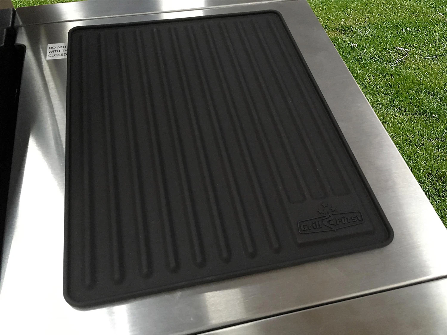 Mit den Abmessungen 35 x 28 cm passt die Besteckunterlage auf fast alle Gasgrill Seitentische oder Ablageflächen. Tip: mit einer 2. Unterlage werden beide Seitenablagen geschützt.