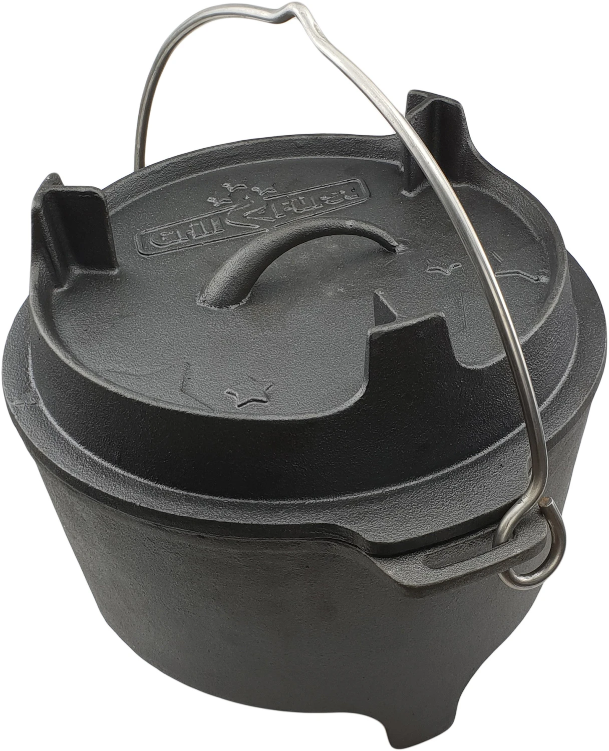 Der Gusstopf eignet sich ideal für den Gasgrill, Holzkohlegrill oder die Feuerstelle und kann sogar im Backofen benutzt werden. Befeuern Sie den mobilen Gusstopf unterwegs einfach mit Briketts und genießen wo immer Sie möchten besonders köstliche und perfekt zubereitete Gerichte.