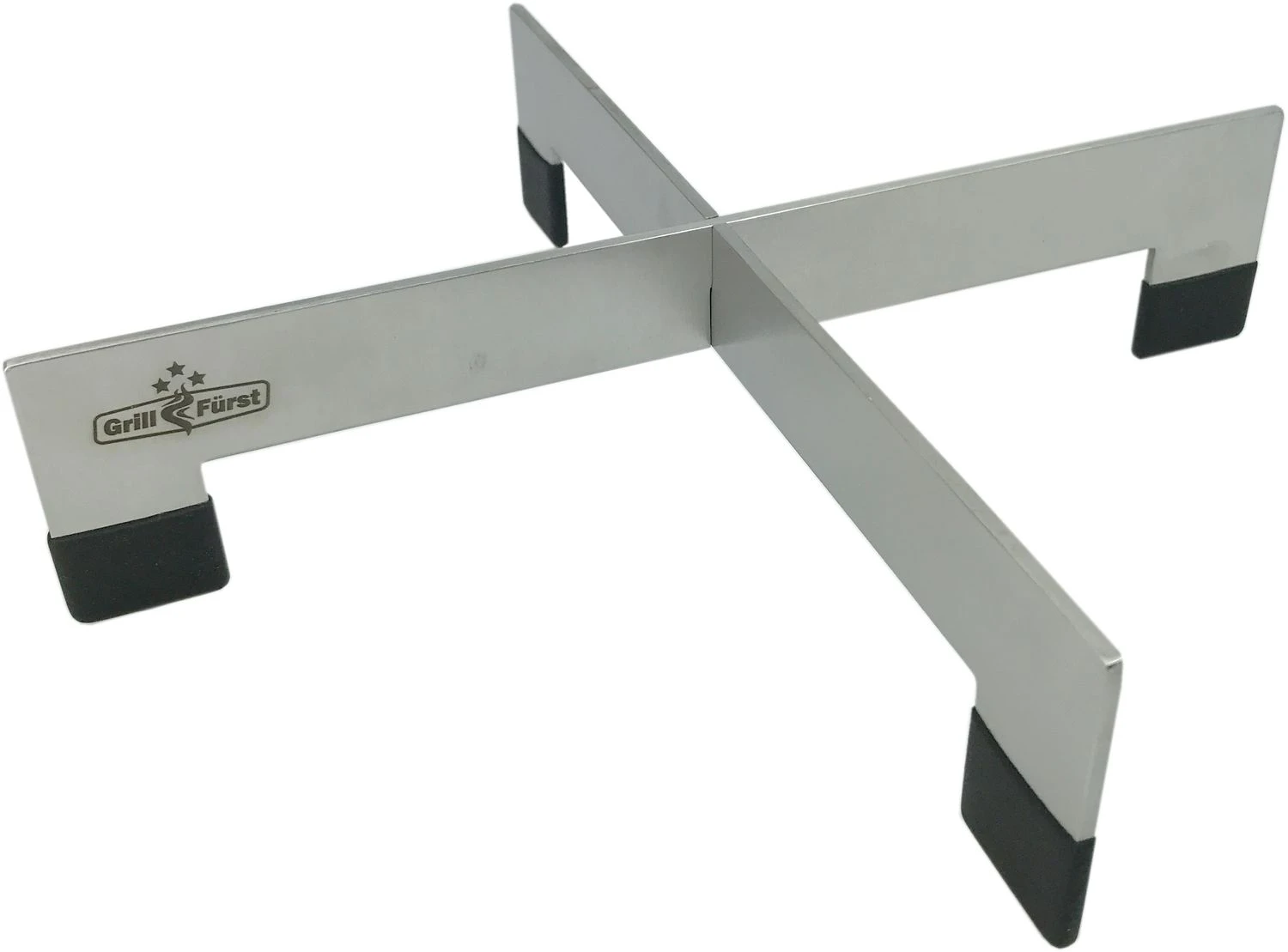 Die Konstruktion des Gestells ist besonders platzsparend und simpel. Die beiden Streben mit jeweils 2 Standfüßen werden einfach an den dafür vorgesehenen Schlitzen ineinandergesteckt. Auf dem sich ergebenden Kreuz mit einem Durchmesser von 25 cm lassen sich kleine als auch größere Töpfe und Pfannen perfekt abstellen ohne den Untergrund zu verbrennen.