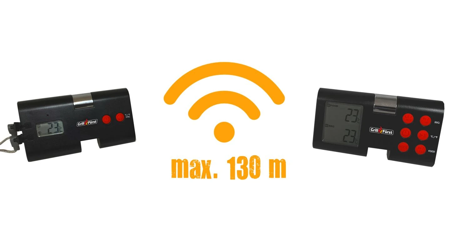 Das Grillfürst Funkthermometer mit maximal 100 bis 130 Metern Reichweite