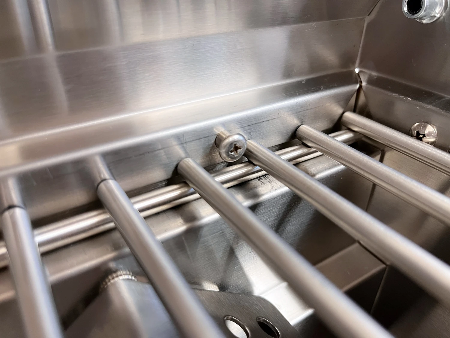 Damit während des Transports die Grillroste nicht im Garraum umherwackeln können, besitzt der G201E an der Rückseite des Garraums eine Grillrost Sicherung. Sie halten die Roste sicher an ihrem Platz, auch wenn der Grill hochkant getragen oder verstaut wird.
