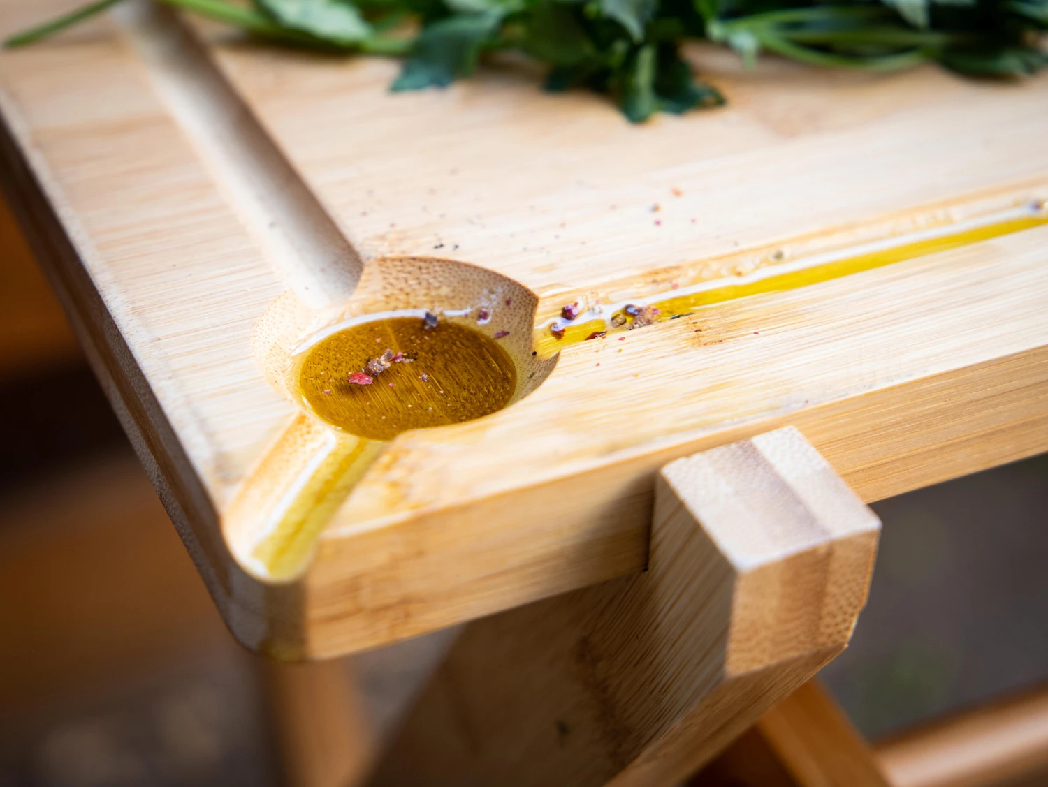 - abnehmbares 63 x 40 cm Bambus Schneidebrett mit Saftrinne – hygienisch und leicht zu reinigen
