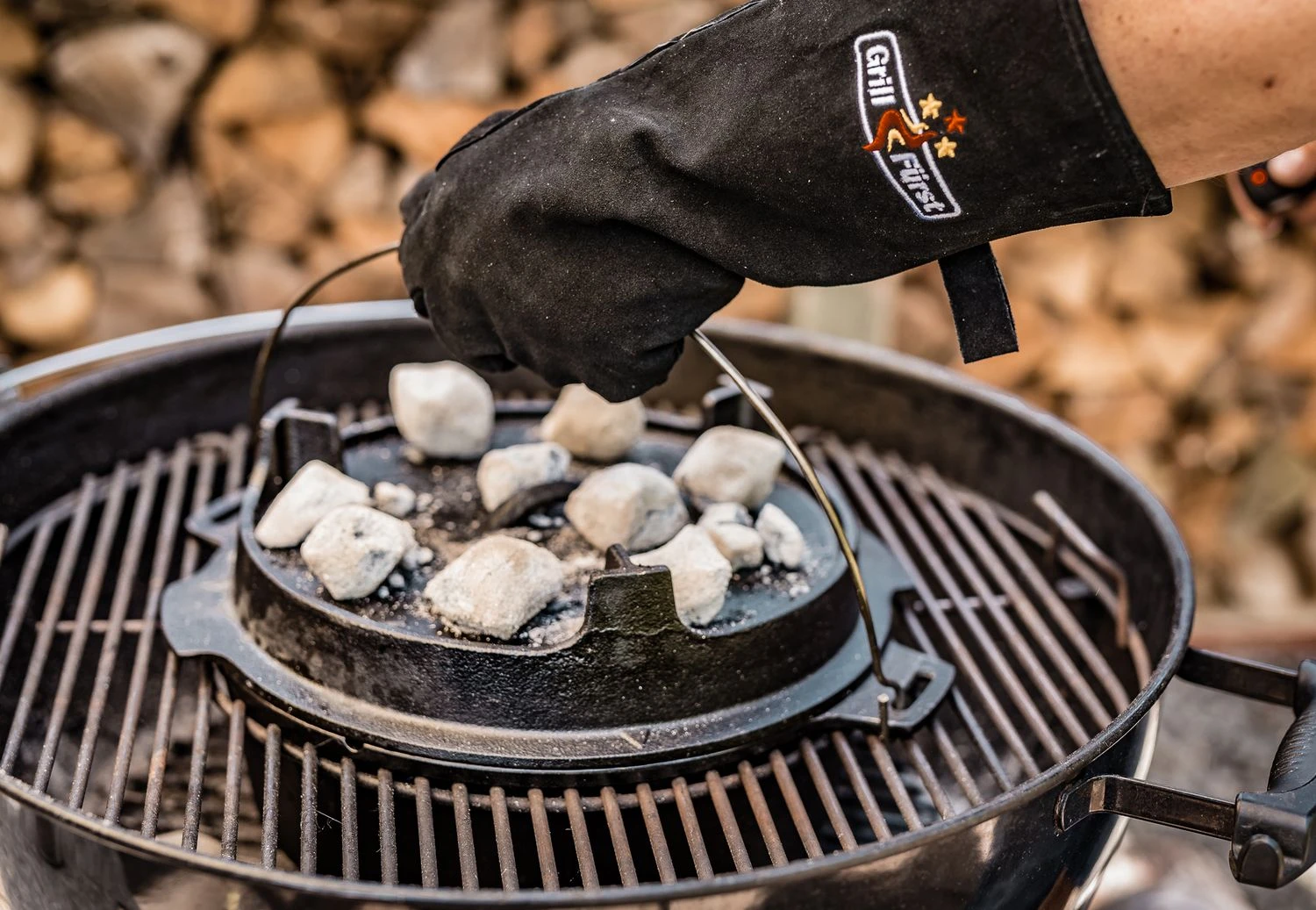 So können Sie ohne Probleme über lange Zeit an Ihrem Grill arbeiten und bei Bedarf auch heisses Grillzubehör für kurze Zeit direkt anfassen.