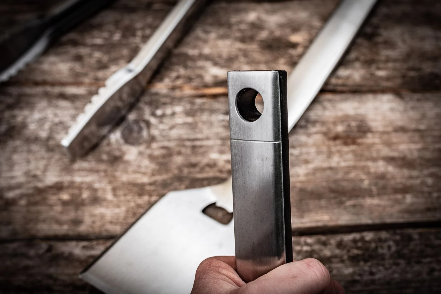 Der große Wender mit integriertem Flaschenöffner dient dem einfachen Wenden von empfindlichem Grillgut wie z. B. Fisch oder Burger Patties. Der Spatel ist angeschliffen und schiebt sich dadurch besonders einfach unter das Grillgut ohne dass es auseinander fällt.