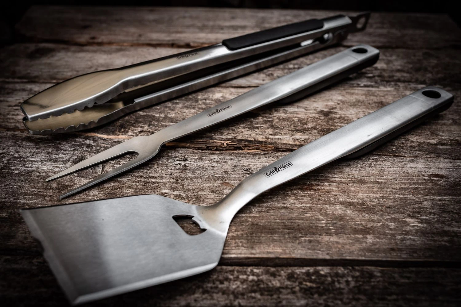 1 x Grillfürst Premium Edelstahl Grillbesteck Set mit Grillzange, -Wender und -Gabel