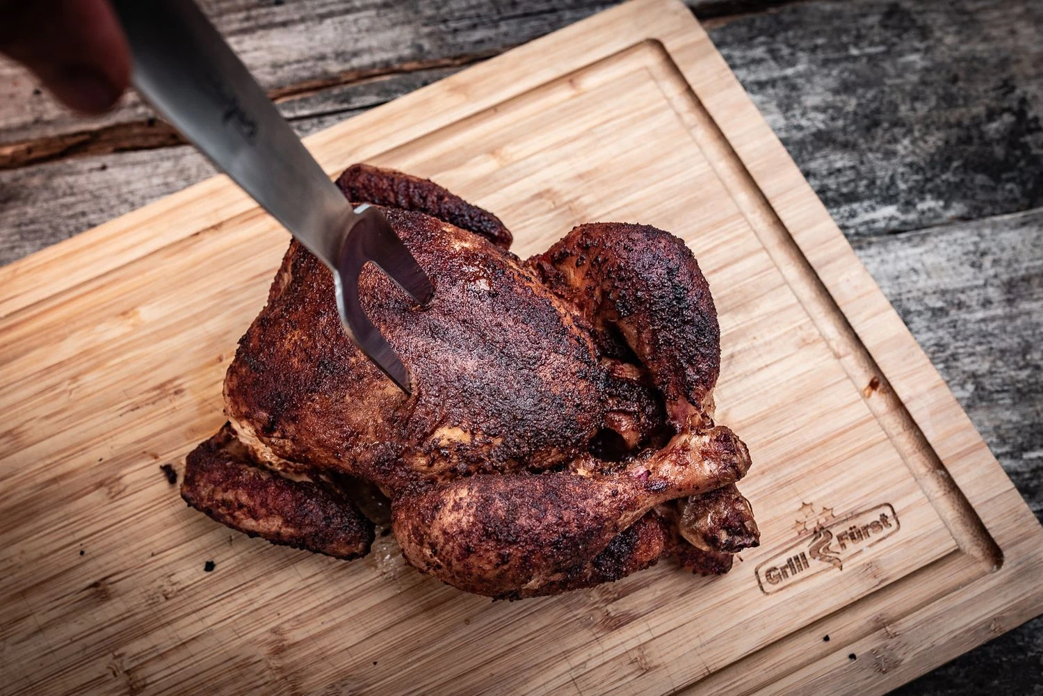 Das Set wird vervollständigt mit einer robusten Grillgabel. Mit der spitzen Gabel lassen sich größere Bratenstücke wenden oder auch zum Tranchieren fixieren. Dabei fällt die unglaubliche Stabilität der Zange auf, wodurch sie mühelos auch schwere Fleischstücke heben kann.