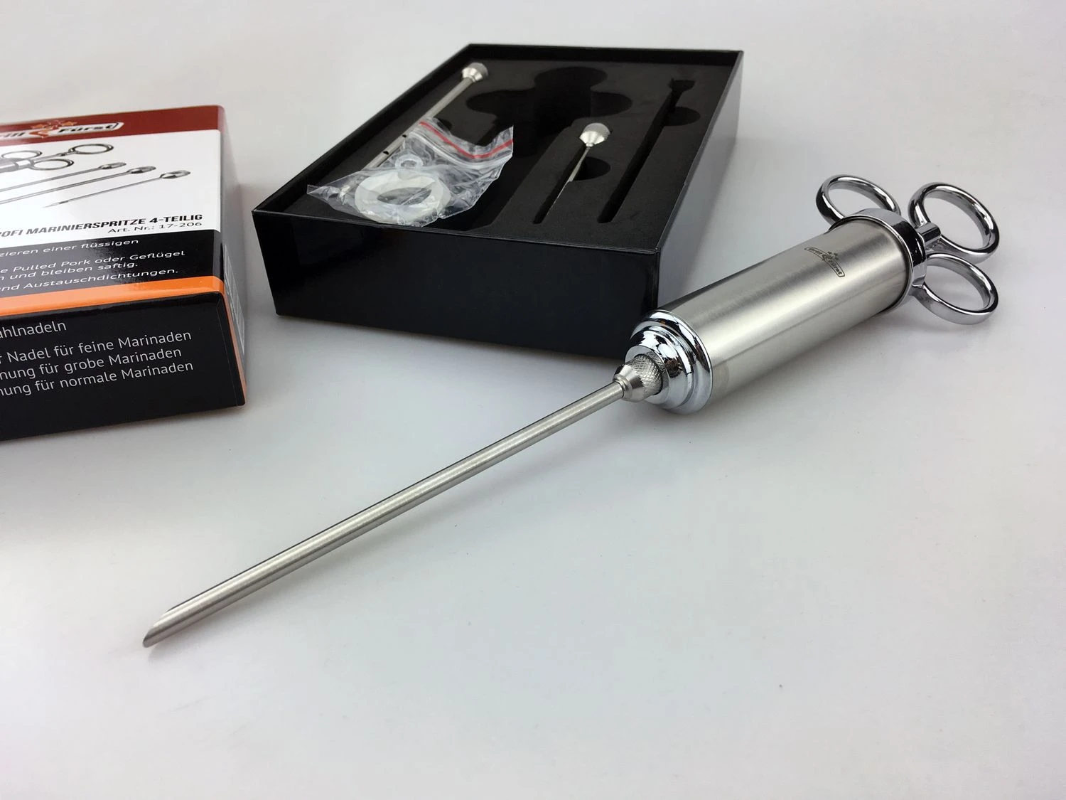 1 Marinierspritze mit 3 Nadeln, sowie Ersatzdichtungen