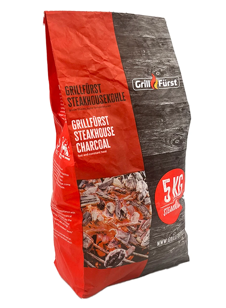 1 x Grillfürst Steakhouse Kohle aus ökologisch wertvoller Herstellung, im nachhaltig produzierten Papierbeutel – 5 kg