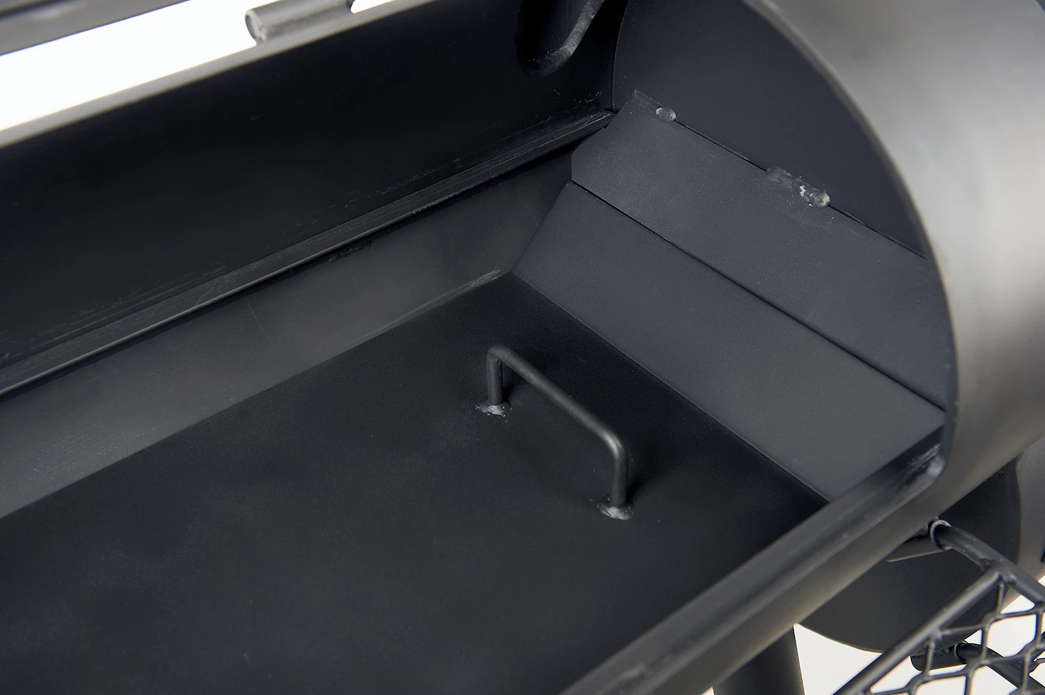 Man merkt bereits beim Öffnen des Smokers die massive Bauweise des Smokers, denn die 6,35 mm starken Deckel von Grillkammer und Feuerbox wollen erst einmal bewegt werden.