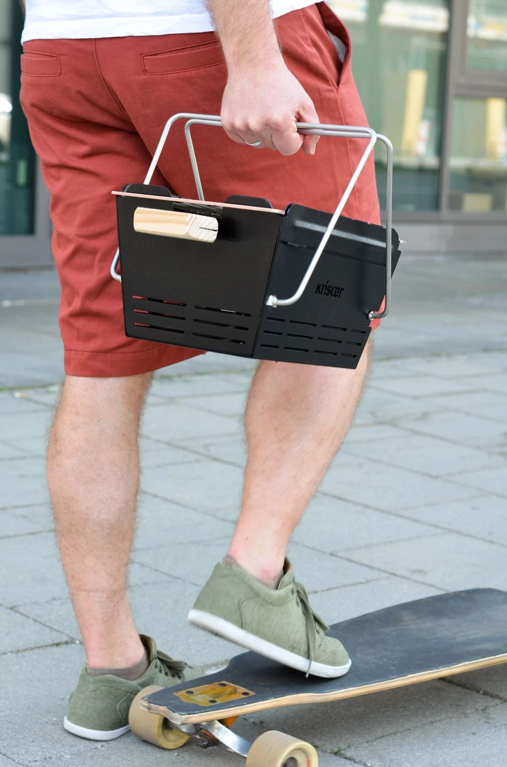 Der Knister Original Grill bietet mit seinen schlanken 4,3 kg Gewicht verschiedene Möglichkeiten für den Transport. Besonders erwähnenswert sind die Multifunktionsbeine, welche gleich 2 Funktionen bieten. Zum einen ermöglichen sie einen sicheren Stand auf nahezu allen Untergründen, auch Kies und Sand und zum anderen sind sie gleichzeitig Tragehenkel, um den Knister praktisch wie einen Korb zu tragen. Alle benötigten Grillutensilien werden einfach in den Knister hineingelegt.