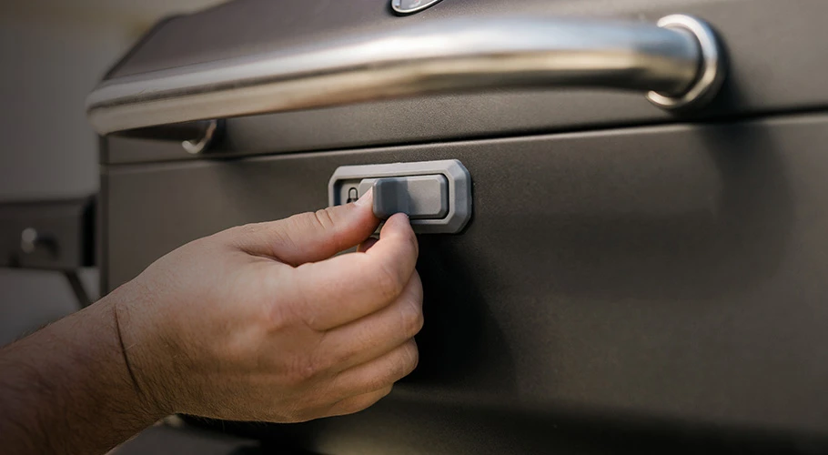 Der mobile Holzkohlegrill von Masterbuilt ist ausgestattet mit einem elektrisch betriebenem SteadyTemp Drehregler. Die benötigte Temperatur wird ganz bequem mit Hilfe des Drehreglers eingestellt und der Kompaktgrill übernimmt selbstständig das Einregulieren der Grilltemperatur.