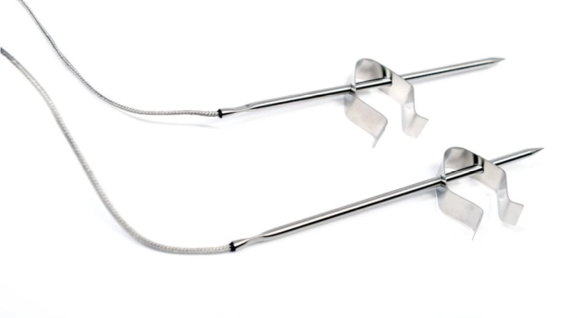 2 Hybrid Temperaturfühler: Sie haben am Grill die freie Wahl, wie die Fühler eingesetzt werden. Entweder können Sie parallel von 2 verschiedenen Stücken Grillgut die Kerntemperatur messen oder Sie nutzen die mitgelieferten Clips, um einen der Fühler in einen Garraum Temperaturfühler zu verwandeln. So ist eine optimale Kontrolle dank des Maverick XR-40 Funkthermometers gewährleistet.