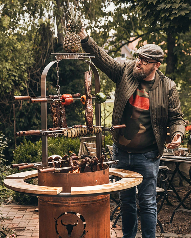 Mit dem Asado Grill Aufsatz für den Moesta Bandit FirePlace holen Sie sich südamerikanisches Flair direkt nach Hause und machen aus jedem Grillabend ein ganz besonderes Ereignis. Asado ist eine in Argentinien traditionelle Art des Grillens über offenem Feuer, die zusammen mit Familie, Freunden und Bekannten oft und ausgiebig zelebriert wird.