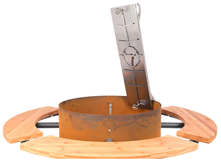 Das Moesta Flammlachsbrett lässt sich beidseitig an Feuertonnen (wie zum Beispiel dem Moesta Bandit Fireplace) und Kugelgrills montieren. So kann das FlameBoard auch während der Zubereitung um 180° gewendet werden, um ein besonders gleichmäßiges Garergebnis zu erhalten. Gleichzeitig lässt sich der Neigungswinkel komfortabel in 4 verschiedenen Stufen einstellen.