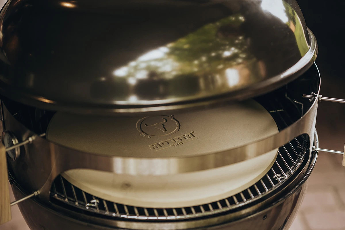 Mit dem Moesta Pizzastein backen Sie Ihre Pizza ganz einfach selbst auf dem Grill. Freuen Sie auf knusprig krossen Teig wie vom Lieblings-Pizzabäcker.