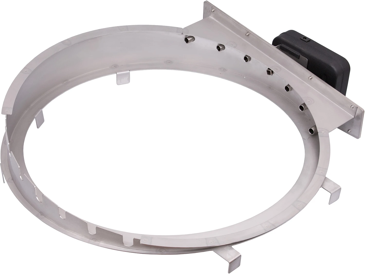 Die Rotisserie bietet zusätzlich noch 9 Halterungen für die optional erhältlichen Schaschlikspieße. Diese werden durch ein Getriebe alle gleichzeitig über den Motor gedreht, so dass die Speisen auf den Spießen gleichmäßig von allen Seiten garen.