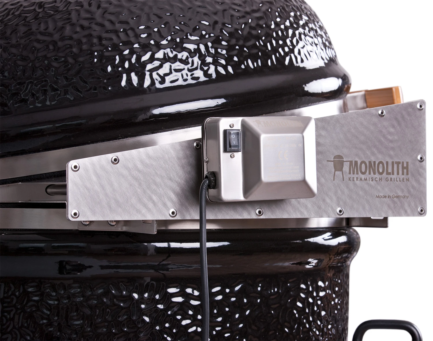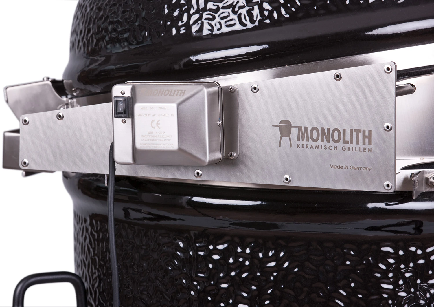 Damit ist er das perfekte Zubehör für die Monolith Rotisserie, wenn eine Steckdose in der Nähe ist. So um gehen Sie das Problem leerer Batterien im Betrieb.