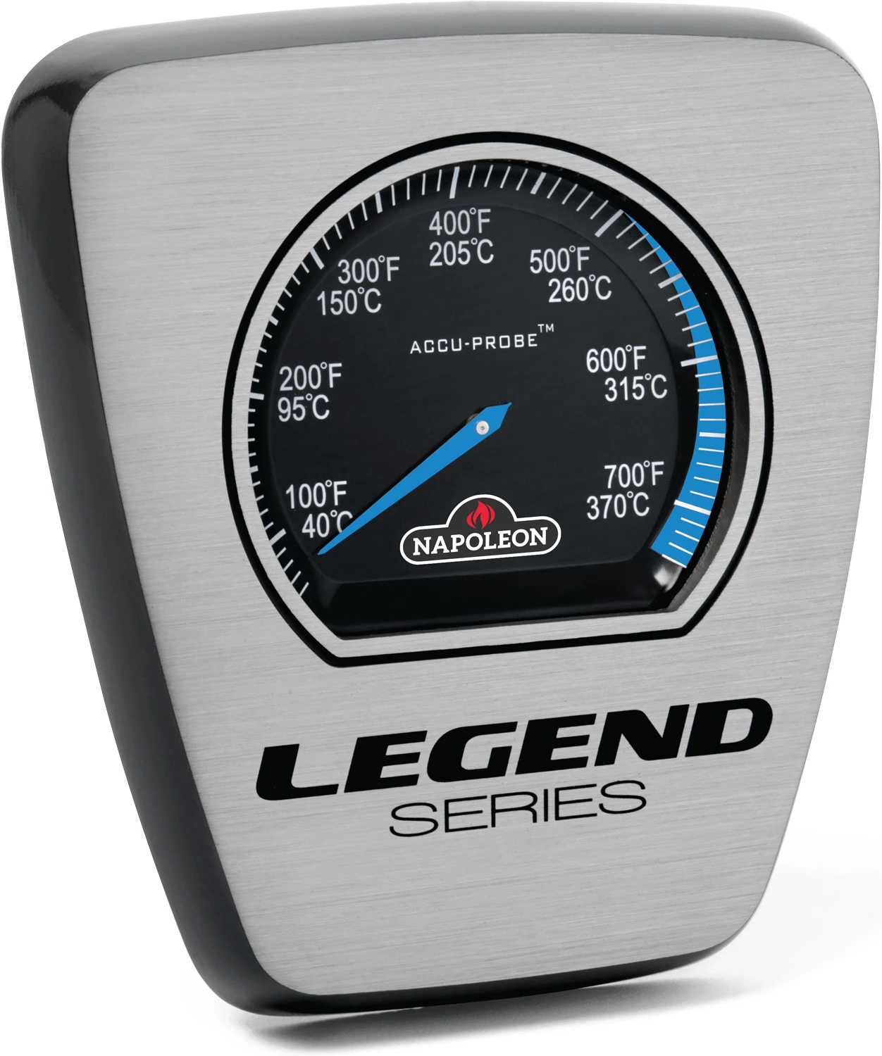 Das Deckelthermometer ACCU PROBE™ zeigt Ihnen zuverlässig die Garraumtemperatur an. Mit einer Skala von 40°C bis 370°C überwacht es den gesamten Temperaturbereich des Geräts.