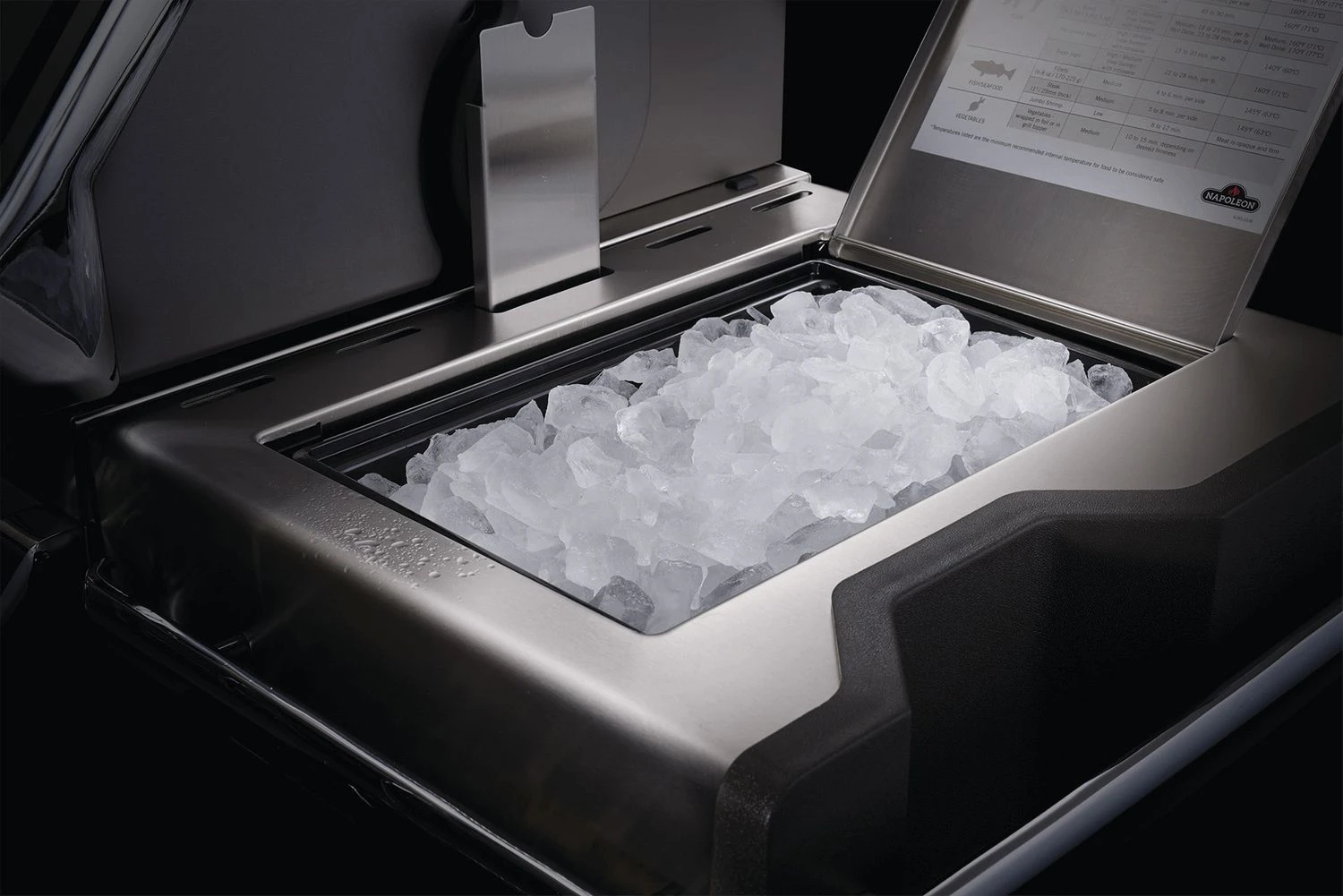 Ein Kühlfach in unmittelbarer Nähe zur Grillkammer! Gönnen Sie sich den Luxus und füllen das isolierte Fach in der Seitenablage mit Eis und kühlen ganz entspannt Ihre Getränke während Sie sich um die Zubereitung Ihrer Leckereien kümmern. Natürlich auch ideal geeignet um Speisen, Früchte, Desserts usw. kühl zu halten. Ein Schneidebrett aus Kunststoff dient zusätzlich zur Edelstahlblende der Abdeckung des Fachs.