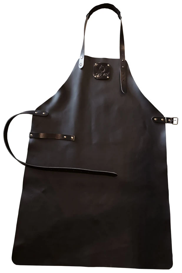 Hinweis: Die Schürze sollte in regelmäßigen Abständen mit einer Lederpflege behandelt und immer in geschlossenen Räumen gelagert werden!