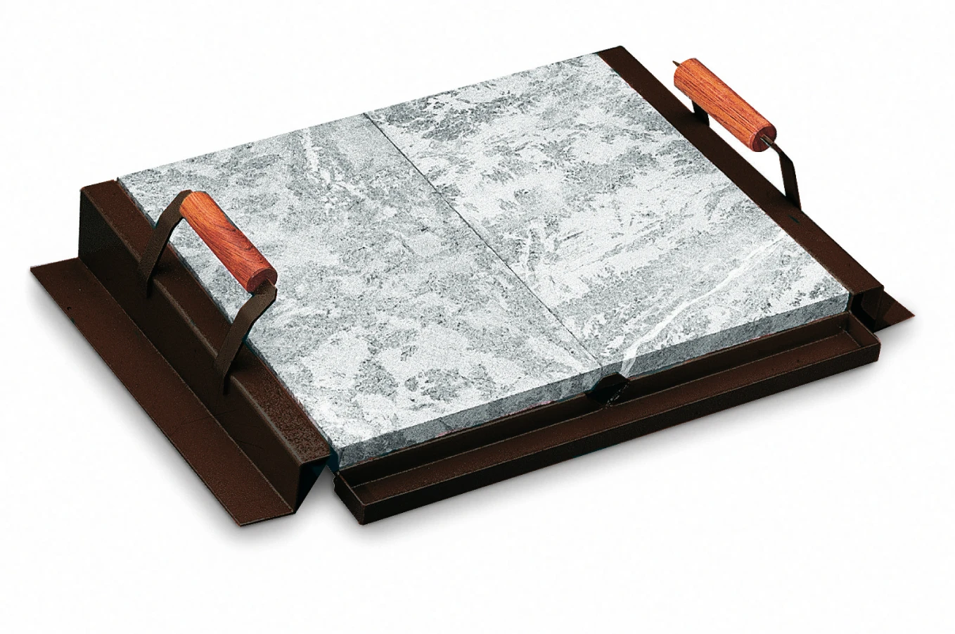 Die Specksteinplatte von Palazzetti können Sie dank der Halterung einfach in Ihren Grillkamin einschieben. Die Halterung ist aus lackiertem Stahl. Die Speckstein Platte passt in die Modelle mit einem 68 x 44 cm Einschub.