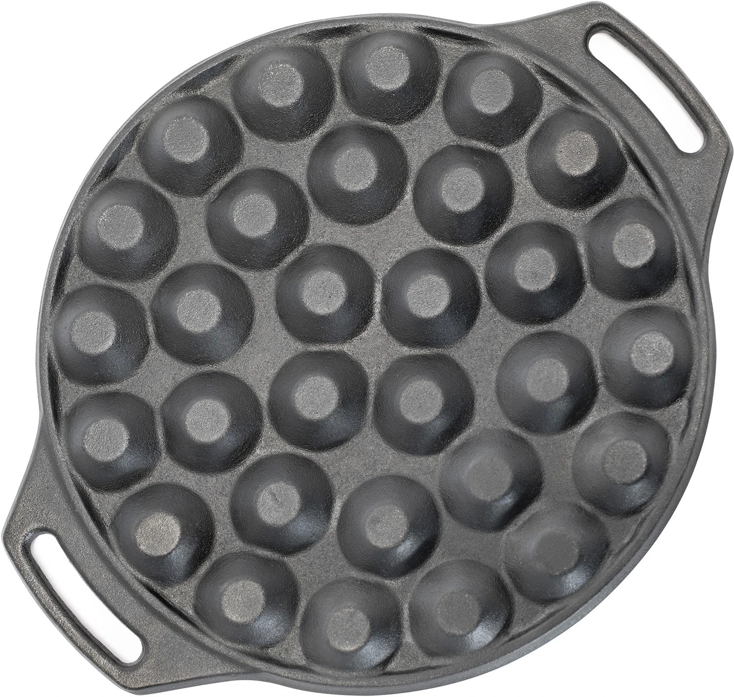 Die Gusseiserne Pfanne besitzt 30 Vertiefungen, in denen die Poffertjes ausgebacken werden können.