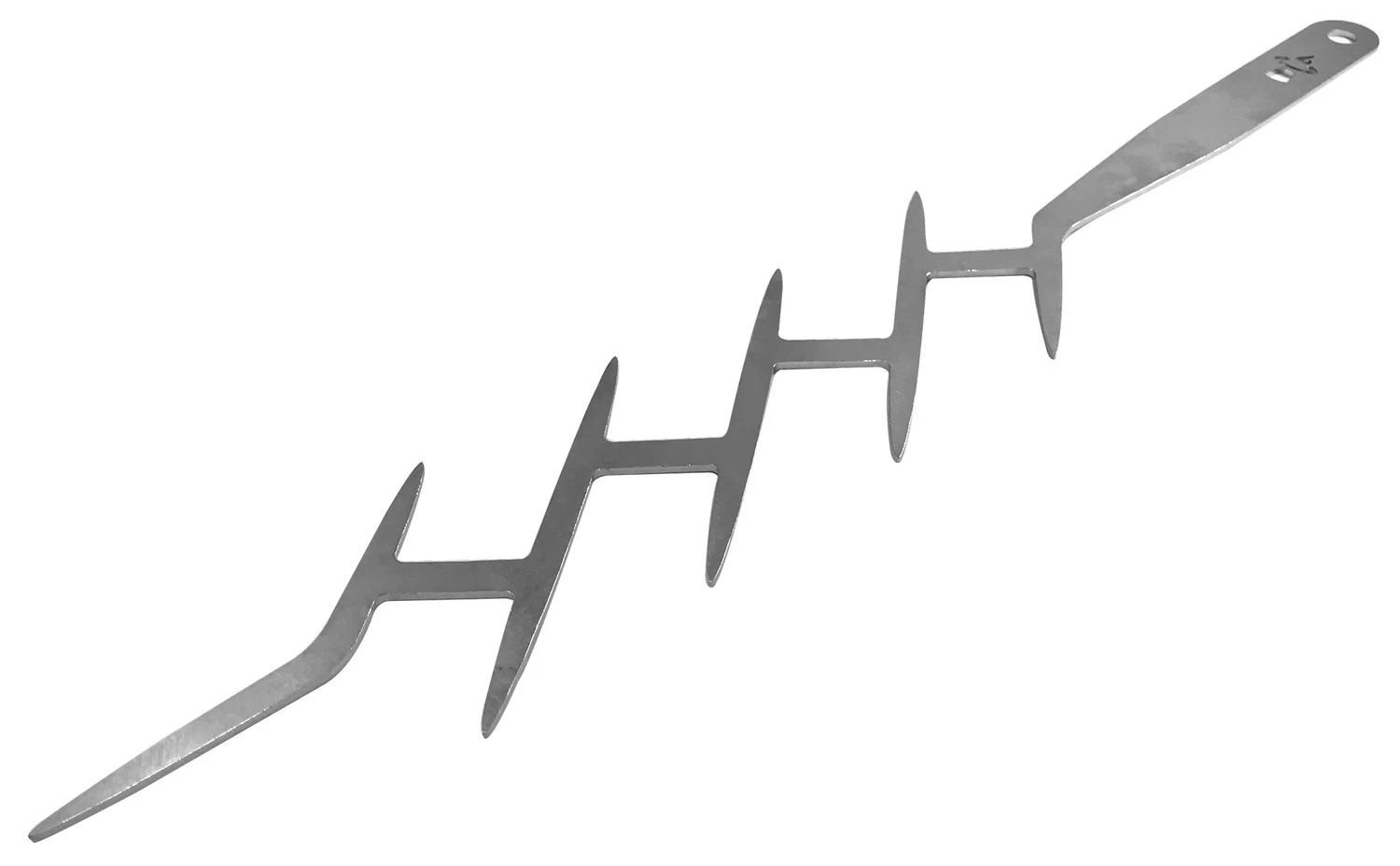 Der Remundi Grillspieß Herkules kann aufgrund seiner besonderen Form im Vergleich zu anderen Grillspießen einfach von der Seite bestückt werden.