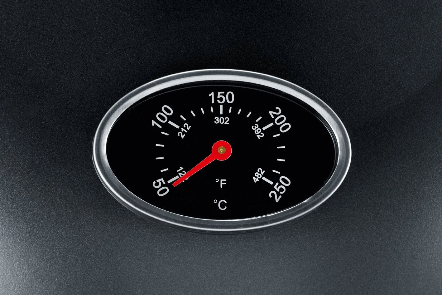 - Haube mit integriertem Deckelthermometer und Haken zum Befestigen am Grill