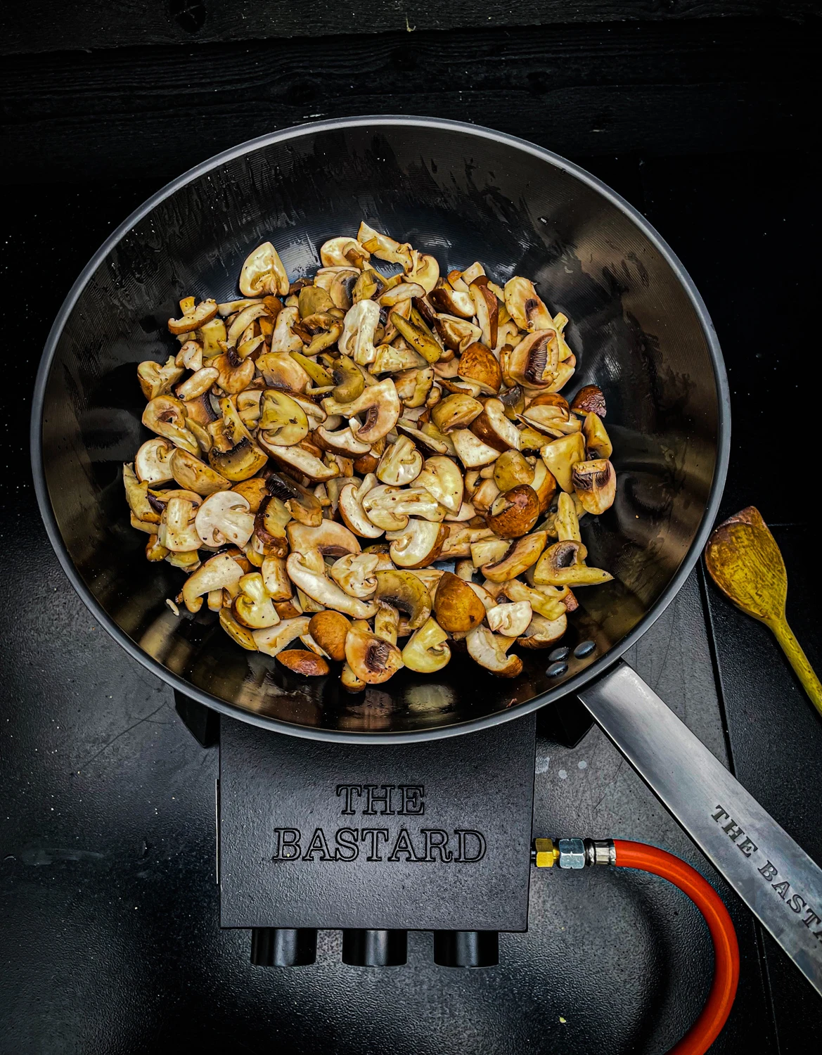 Damit ist der Phantom Carbonstahl Wok von The Bastard ein echtes Must Have in der Grillküche! Während das Steak auf dem Grillrost brutzelt, bereiten Sie in Ihrem Wok eine leckere Pilzpfanne zu. Oder Sie braten direkt das Steak besonders scharf im Wok an und geben feine Kräuter, Sossen und Gemüse direkt mit dazu, um die köstlichen Aromen aus dem Bratensaft vollkommen ausnutzen zu können.