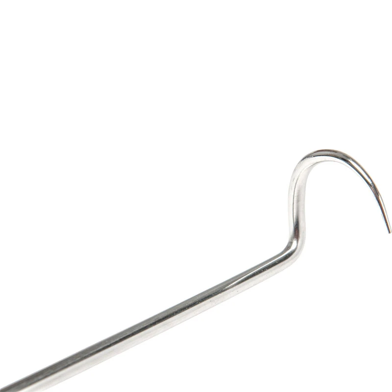 Der Wendhaken besteht aus Edelstahl und besitzt einen gebogenen Dorn. Dieser wird in das Grillgut eingestochen und der Wender am Griff dann aus dem Handgelenk heraus gedreht.